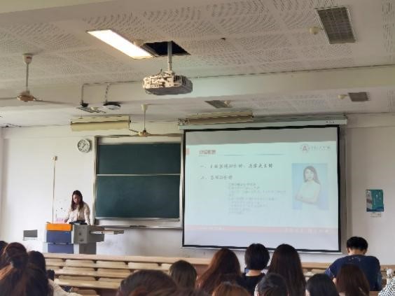 在工商管理(国际班)18级学生的就业指导课堂上,张君君老师从成功效应、企业的人才眼光以及做人做事的原则和规范等方面为同学们进行了深入讲解。