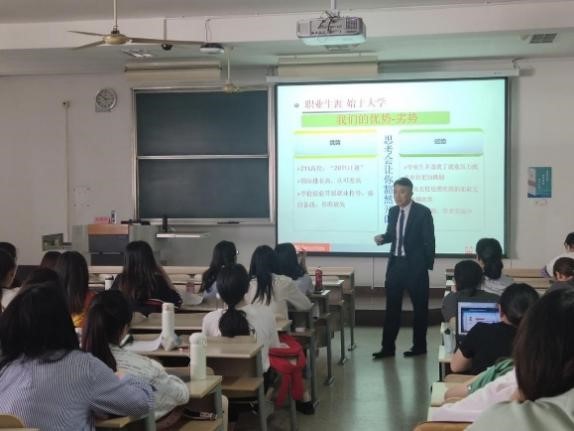 在工业1801、1802和国贸1801班学生的就业指导课堂中,尚尔兵老师首先询问了同学们的职业规划,得知大部分同学选择继续深造后,他从自己的求学经历展开,讲述了自己在学生阶段所积累的知识对日后工作产生的积极影响以及不同阶段不同工作带给他的感受。尚尔兵老师鼓励大家在大学期间要努力学习,掌握好专业知识,不断提升自己的能力,尤其要注重语言能力的培养,这是进入企业工作的前提和基础。