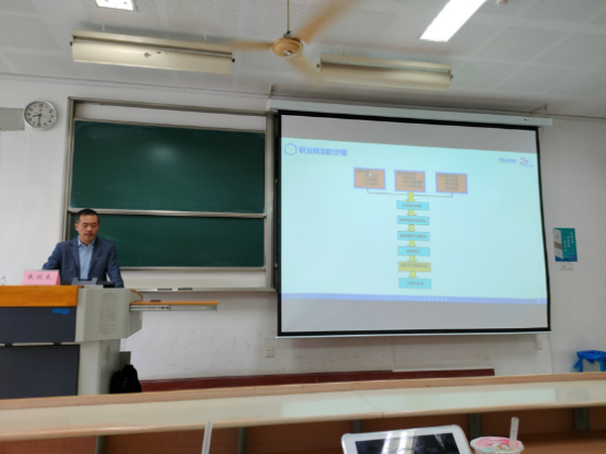 工商管理18级学生的就业指导课堂上,朱成良老师从就业现状分析、职业规划的影响因素、如何展开职业规划以及面试流程及方法等方面进行了介绍。