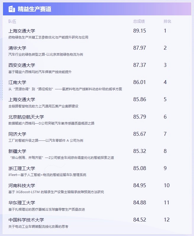 “精益生产”赛道总成绩排名