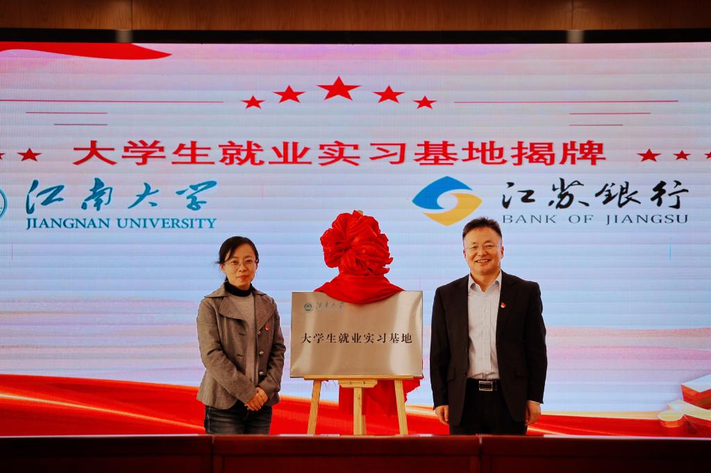 校企双方领导徐长平、徐静共同为“tyc33455cc太阳成集团——江苏银行无锡分行大学生就业实习基地”揭牌。未来,双方将在人才共育方面协同共进,多形式实现学生能力与银行用人服务需求的匹配,为学生提供更多实习就业的机会。