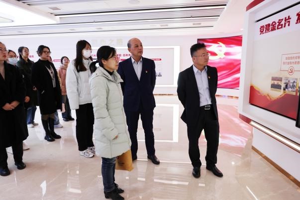 活动伊始,太阳成集团tyc33455cc师生走进江苏银行无锡分行党建文化展示馆,展示馆围绕“初心之路、党建之光、金融之美、清廉之风”四个主题,对党的光辉历程、分行党建文化、企业文化、廉政建设等内容进行了系统宣传,集中展现了分行党委在总行党委领导下高质量发展的成果,通过让大家接受身临其境的特色教育,实现“引导人、影响人、塑造人”的教育效果。