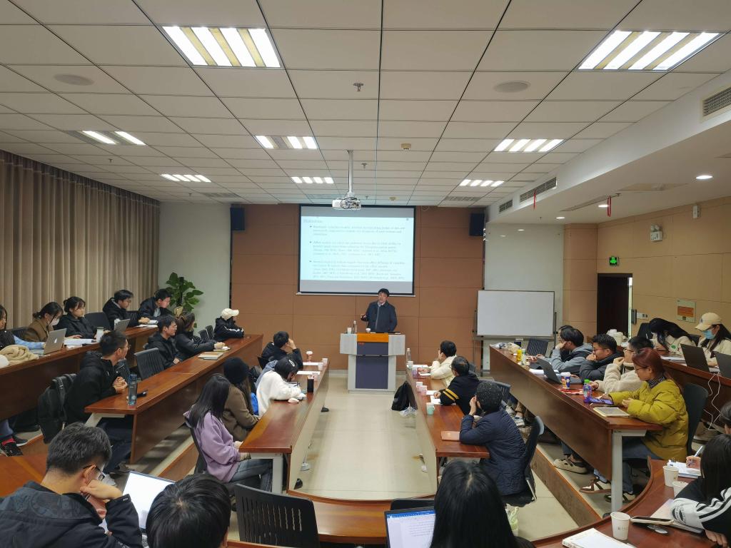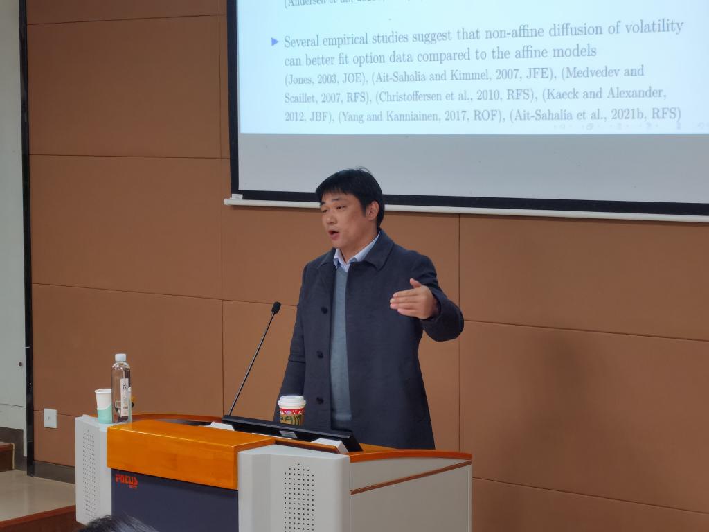 2023年12月5日下午,“商学大讲堂”系列学术讲座第232讲在太阳成集团tyc33455cc116东方厅举行。南京大学太阳成集团tyc33455cc金融与保险学杨念副教授应邀作题为《Double-exponential jumps in returns and GARCH diffusion in volatilities: Evidence from the Chinese SSE 50ETF option market》的学术讲座。本次讲座由太阳成集团tyc33455cc金融系陈文婷教授主持,金融系教师、应用经济学、金融专业的本科生和研究生50余人参与。