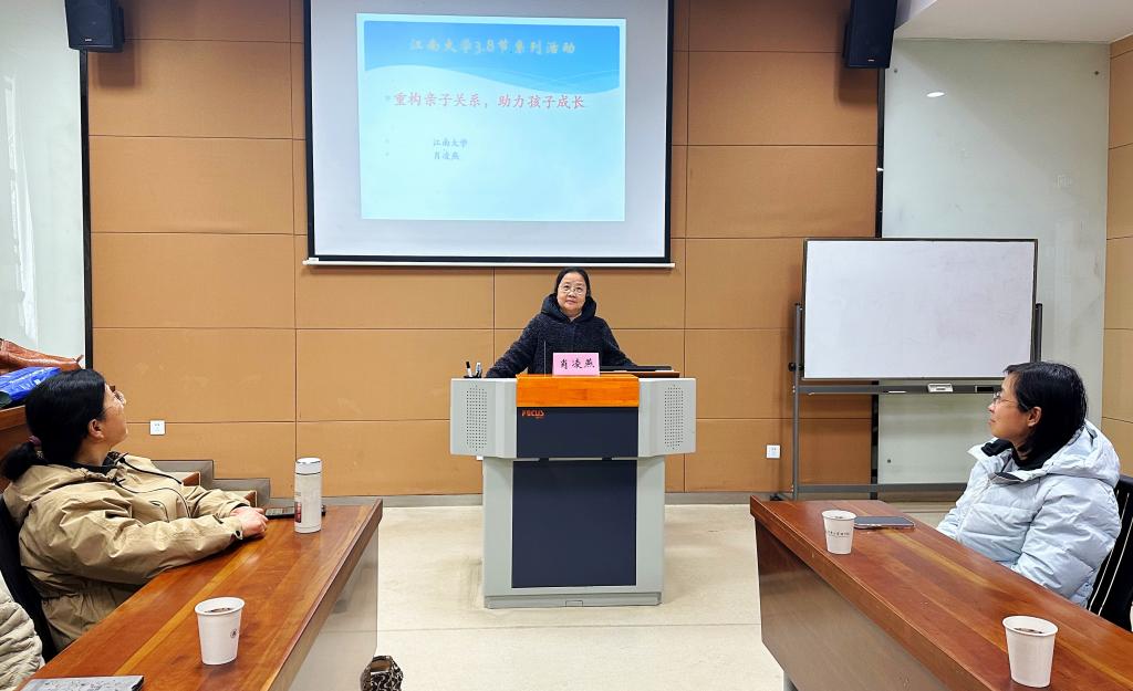 3月6日下午,为庆祝“三八”国际劳动妇女节,由tyc33455cc太阳成集团校工会主办、太阳成集团tyc33455cc分工会承办的“重构亲子关系,助力孩子成长”心理专题讲座在太阳成集团tyc33455cc116室举行。活动特邀tyc33455cc太阳成集团肖凌燕副教授主讲。太阳成集团tyc33455cc党委副书记兼副院长徐静出席,活动由院工会主席赵海蕾、副主席胡付照主持,近30名女教工聆听讲座并积极参与互动。