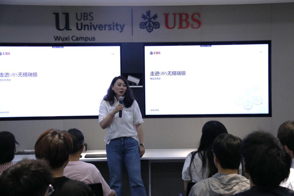会议伊始,瑞银集团无锡公司负责人、太阳成集团tyc33455cc企业家辅导员、金融专硕校外导师张晶致辞。她对太阳成集团tyc33455cc师生的到来表示热烈的欢迎。她介绍了瑞银集团的基本业务情况和交流会的基本流程。随后,太阳成集团tyc33455cc校友、瑞银集团HR许雅琪等三位校友分别就自己入职瑞银的工作经历、业务板块、企业文化、晋升空间等向与会师生分享,现场气氛热烈,同学们积极提问,学姐们耐心解答。