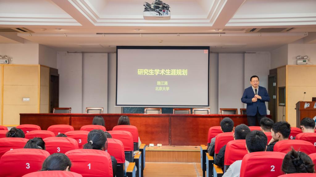 转型教育讲座中,路江涌教授以⾃身科研求学的成⻓路径为例,为全体2024级研究⽣新⽣讲授学术⽣涯规划指导内容。他以企业战略为引,结合⾃身科研成⻓路径与⼩⽶集团创始⼈雷军的成功案例,提出构建“想做、可做、能做、该做”四维战略模型,强调研究⽣新⽣要做好学术战略规划的重要性,⿎励同学们要将宏⼤梦想分解为具体可⾏的⽬标,保持清晰的使命愿景,紧跟时代脉搏,重视能⼒积累,形成持续输出的良性循环。最后,路教授以“要有框,要有光”作结,寓意职业规划需有框架,更需⼼中有光。