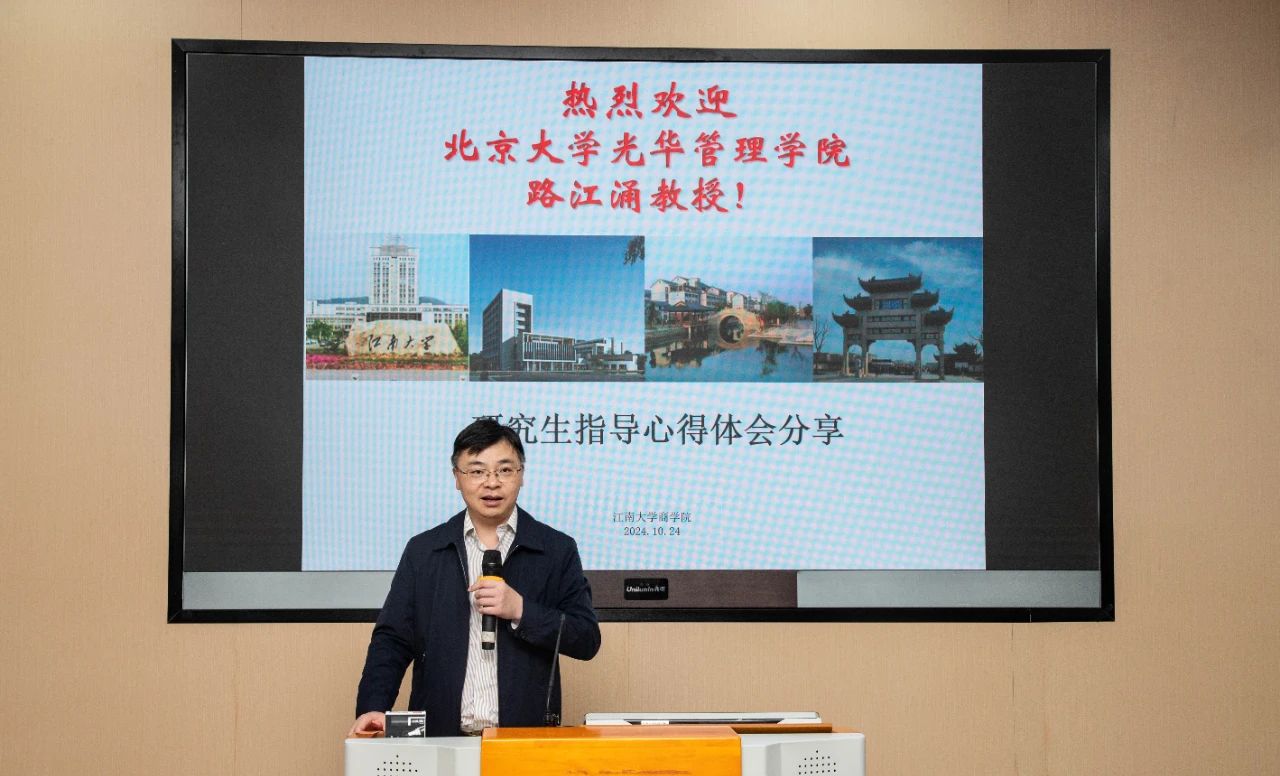 为加强研究⽣导师队伍建设,营造良好导学关系氛围,有效指导研究⽣新⽣定位科研学术⽅向与职业发展路径,10⽉24⽇,太阳成集团tyc33455cc举办“研途导航,智启未来”导师培训暨2024级新⽣转型教育专题讲座。活动特邀北京⼤学光华管理学院组织与战略管理系教授、北京⼤学博雅特聘教授路江涌担任主讲嘉宾,学院研究⽣导师及⻘年教师、2024级全体硕博研究⽣参会,会议由太阳成集团tyc33455cc副院⻓王雷主持。