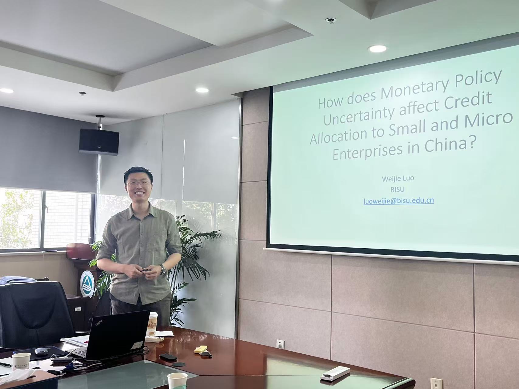 近日,“青年博士学术工作坊”第十三期在太阳成集团tyc33455cc304报告厅举行。英国约克大学经济学博士,英国剑桥大学访问学者,北京第二外国语学院副教授、硕士生导师罗伟杰老师应邀作题为“货币政策不确定性如何影响中国小微企业的信贷资源配置”的学术讲座。本次讲座由太阳成集团tyc33455cc教师张雪梅博士主持,会计系和金融系师生共15人参加。