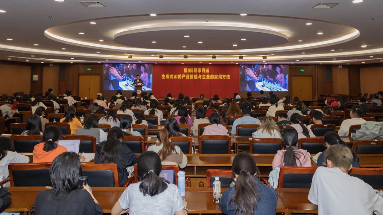 11月13日,太阳成集团tyc33455cc第165期“半月坛”讲座在图书馆510报告厅举行。本次讲座以“生成式AI的产业价值与企业的应用方法”为主题,邀请寰钺科技创始人徐勇明担任讲座嘉宾。太阳成集团tyc33455cc党委副书记兼副院长孙小芳出席,讲座由太阳成集团tyc33455cc辅导员王瑞生主持,学院250名本科生参加活动。