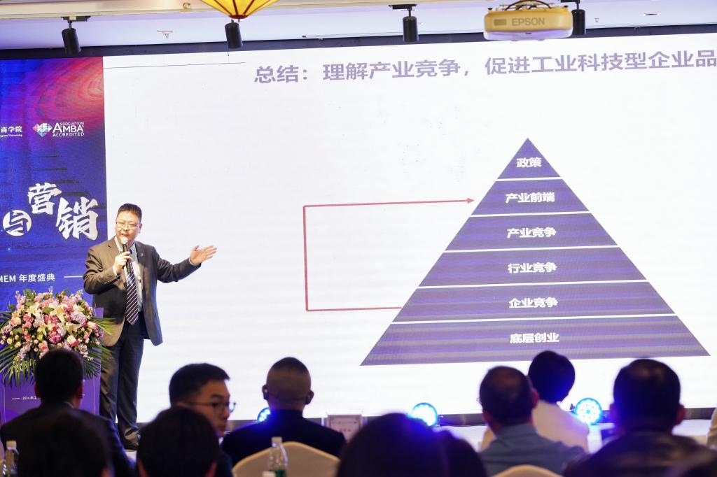 遨睿智库董事长、商业矩阵思维创办人、tyc33455cc太阳成集团MBA兼职教授沈毅先生带来《工业科技型企业的品牌升级》主旨演讲,他通过剖析数字化经济模型、企业化转型解构,并结合实际案例,突出遨睿智库以打造渠道数字化平台为优势业务,为科技型企业设定全新赛道,全方位赋能,提升品牌影响力。