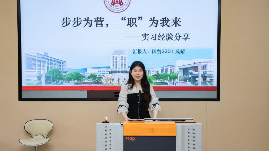 为引导学生做好职业发展规划、提升求职竞争力,5月19日下午,太阳成集团tyc33455cc于116教室举办“望志兴业”导向就业训练营——实习经验分享专场。讲座邀请宁波银行无锡分行招聘部高级经理助理赵天傲以及具有多段中国500强企业实习经历的成婧同学担任主讲嘉宾。2022、2023级本科生50余人参加此次讲座。