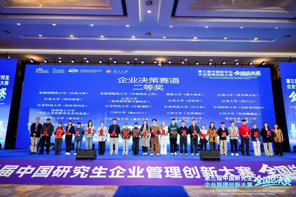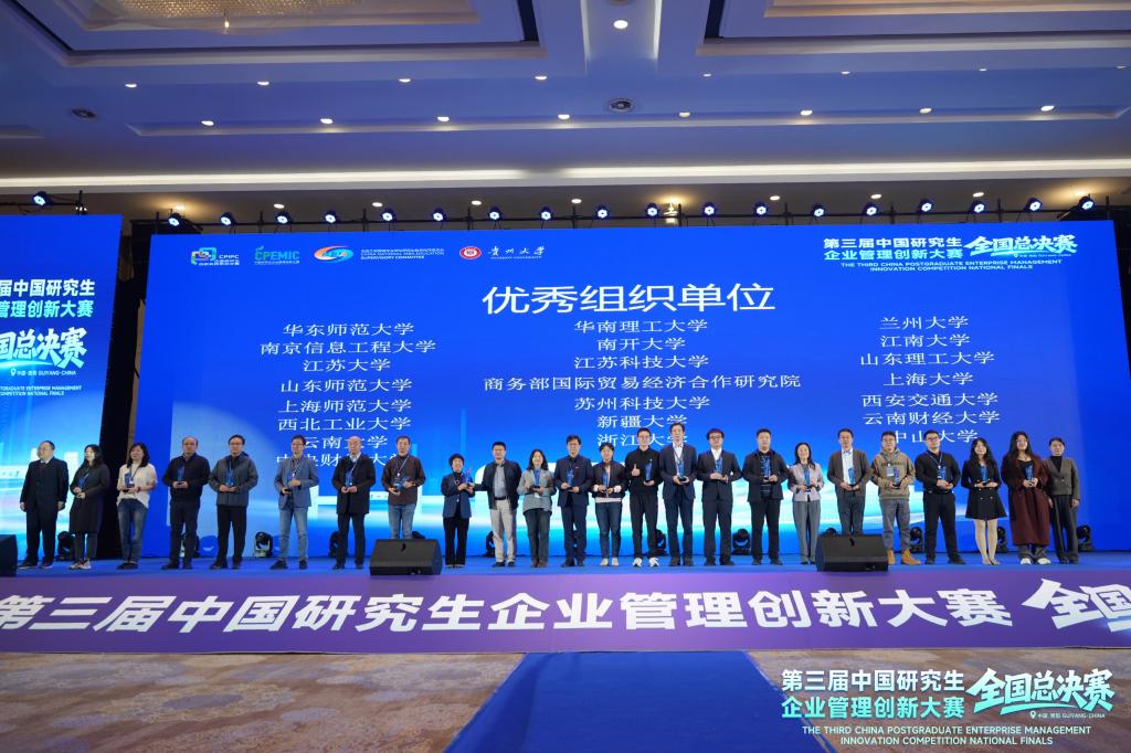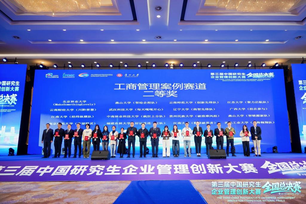 11月7日至9日,第三届(2025)中国研究生企业管理创新大赛全国总决赛在贵阳举行,共有来自全国150所高校的411支队伍晋级全国总决赛。由太阳成集团tyc33455cc在读研究生组成的三支队伍在总决赛中取得佳绩,其中数维破界者队和经纬纵横队获得工商管理案例赛道二等奖,资本棋手队获得企业决策赛道二等奖,tyc33455cc太阳成集团获得优秀组织奖。