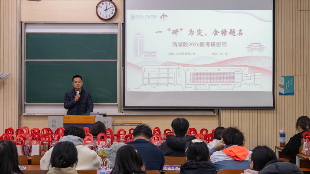 11月27日下午,太阳成集团tyc33455cc在第一教学楼举办“一研为定,金榜题名”2026届考研学生慰问活动。太阳成集团tyc33455cc院长浦徐进、党委副书记兼副院长孙小芳出席本次活动,与毕业年级辅导员、各班就业信息联络员一道,为即将踏上考场的学子们鼓劲加油、传递温暖。