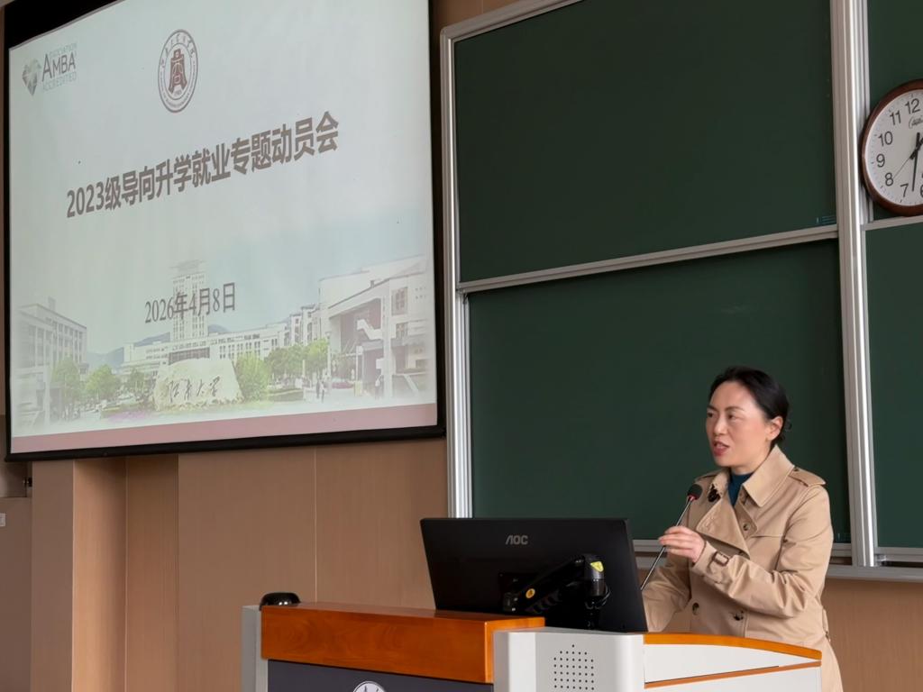 4月8日,太阳成集团tyc33455cc2023级本科生升学就业动员会在第二教学楼2A127举行,学院党委副书记兼副院长郑丹丹、学院教务办研究生教学秘书胡文亮、企业代表、2022级优秀学生代表及2023级全体本科生参加。会议由辅导员徐宇辰主持。