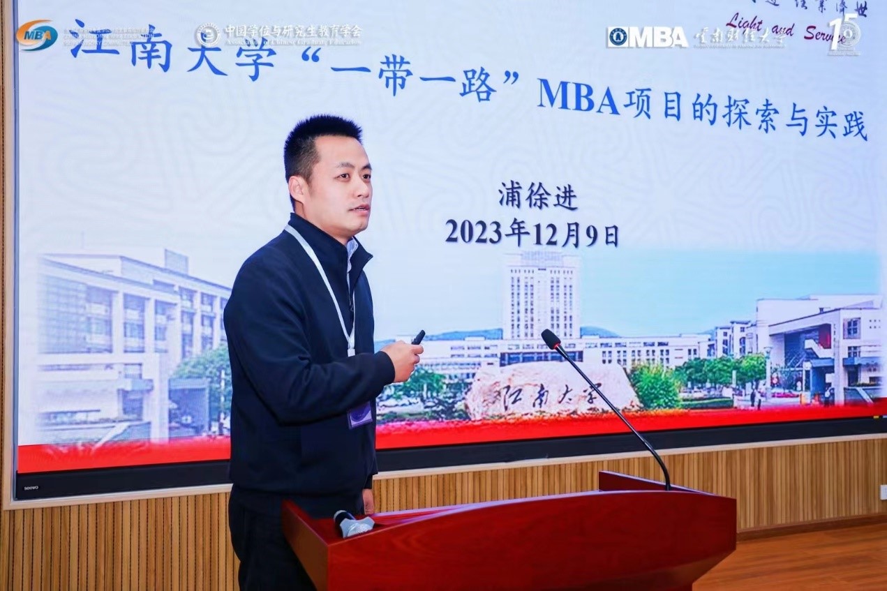浦徐进院长向大会分享了“一带一路”倡议十周年与高等教育的成果,详细阐述了tyc33455cc太阳成集团“丝绸之路”工商管理(MBA)校企联合高层次人才培训项目2020年获批中国政府奖学金项目以来的发展动态、创新培养模式以及面临的挑战,从如何发挥MBA项目产教融合优势、如何发挥“一带一路”MBA项目“文化使者”影响力等方面提出了项目未来发展的构想。