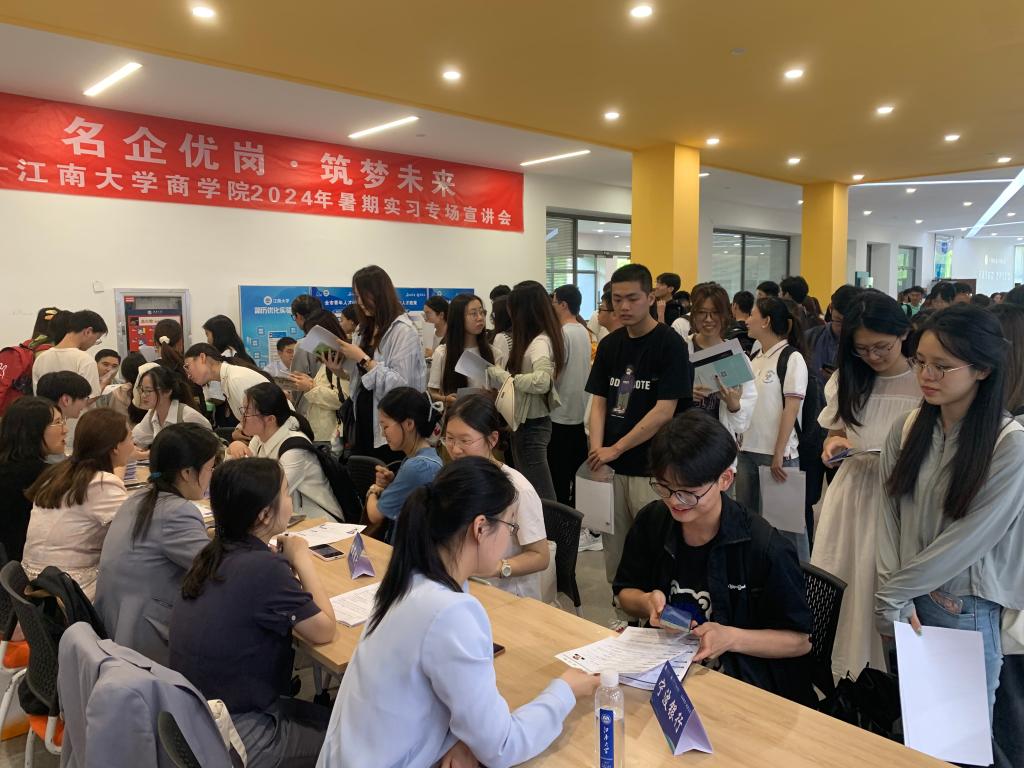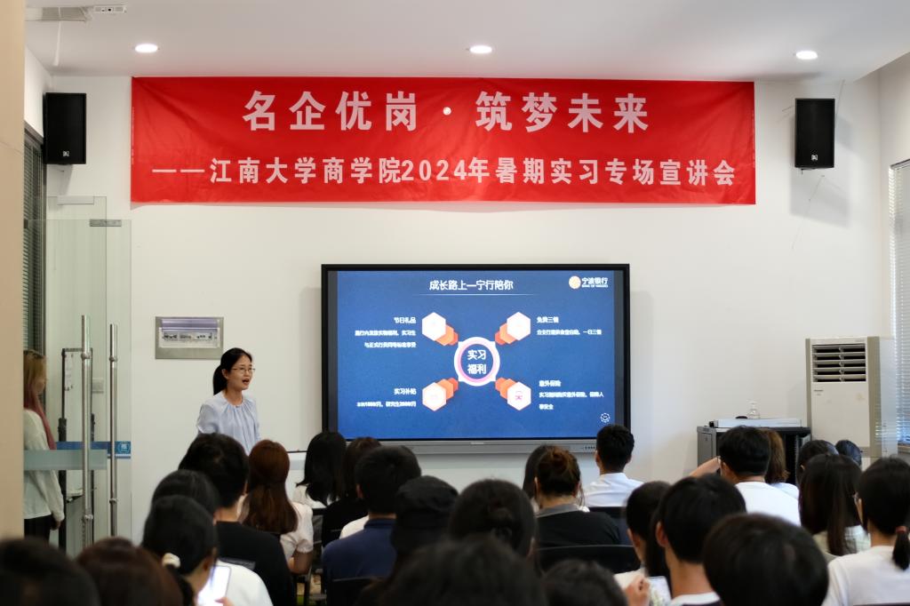 为贯彻落实党中央、国务院关于做好高校就业工作决策部署,扎实推进tyc33455cc太阳成集团“奋进计划”中保就业、促就业相关要求,提前谋划2025届毕业生就业工作,以暑期实习促进大学生高质量充分就业。近日,太阳成集团tyc33455cc邀请国联证券、顺丰集团、远东集团、江苏银行、宁波银行、招商银行、无锡市高新人才集团、可口好粮等8家在锡企业面试官代表走进江南,亲临现场在北区大学生活动中心开展“名企优岗,筑梦未来”暑期实习生专场宣讲会。tyc33455cc太阳成集团就业指导中心副主任胡国顺、太阳成集团tyc33455cc党委副书记兼副院长徐静、辅导员孙旭媛、吴松和150余位太阳成集团tyc33455cc本研学生参加活动。