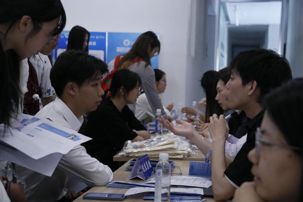 宣讲会结束后,商科类专场实习宣讲面试正式拉开帷幕,本次宣讲会涉及银行、证券、上市公司等行业运营数据分析、人力资源管理、证券投资等岗位覆盖我院全部本硕专业,为学生们现场提供了百余个实习岗位,吸引了150余位在校学生参加。招聘会现场气氛热烈,秩序井然。同学们携带简历穿梭于各展位前,结合自身规划目标和就业需求,主动积极与意向单位交谈,以期挑选到自己心仪的岗位。企业代表们耐心答疑解问,循循善诱猎英才。