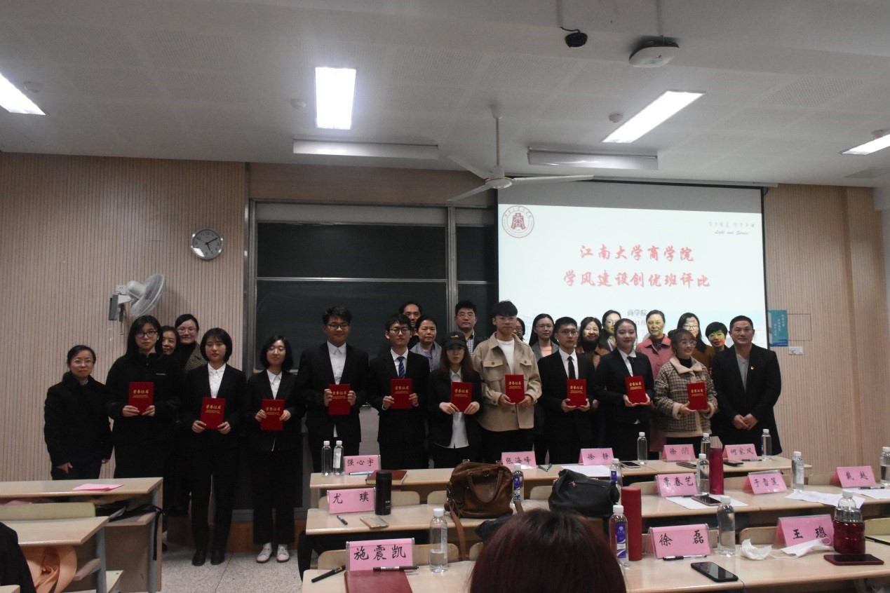 各班级答辩结束后,学院领导进行总结发言。院党委书记张海峰宣读本次评比结果并颁发荣誉证书。本次活动共评选出会计1702、国贸1703、国贸1802、国贸1804、会计1802、会计1803、金融1902、国贸1902、会计1902、会计1903十个太阳成集团tyc33455cc“学风建设创优班”。勤勉尚学,笃行至善,这些富有代表性的班级,既作出了表率,同时又在以实际行动弘扬“笃学明道,经业济世”的院训精神。纵观本次评比,师生共同领略了15个班级的精彩展示,展现了我院莘莘学子不断拼搏、锐意进取的奋斗身姿,同时也反映了众多师长、前辈谆谆教诲、循循善诱的辛勤付出。希望我院学子积极向“先进”看齐,展示出更多更亮丽的班级风采!