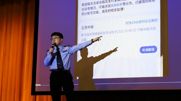 杨恺警官从“如何科学使用互联网”和“如何防范电信网络诈骗”两个方面为同学们敲响网络安全警钟。网络不是法外之地。杨恺警官首先指出,大学生要规范使用互联网,充分认识到参与网络黄赌毒、散播谣言、网络公然侮辱他人、网络暴力等行为都是违法行为。杨恺警官还特别指出网络电信诈骗由于其多层级、链条化的特征,严重损害了个人财产权益。对此,他结合典型案例,提醒同学们对于冒充身份、网贷诈骗、游戏网恋等诈骗手段要提高警惕,详细讲解了“三不一多”的自我防范方法,希望同学们都能够了解诈骗手段,避免落入诈骗分子设下的圈套。