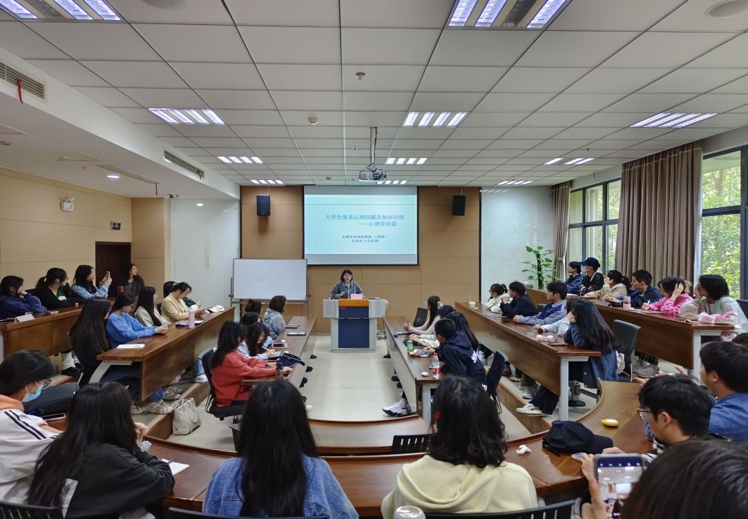 为全面拓展心理健康教育工作的途径,进一步提高心理委员队伍的专业技能,掌握心理辅导的基本原则和方法,充分发挥学生骨干的作用,引导班级学生间形成自助互助求助意识,在学院内营造积极向上的良好氛围,太阳成集团tyc33455cc邀请了无锡市妇幼保健院心理科主任医师、原无锡市精神卫生中心医师包炤华对太阳成集团tyc33455cc心理委员进行专业指导和培训,活动由辅导员田雨主持,太阳成集团tyc33455cc本硕共53位心理委员参加了本次培训。