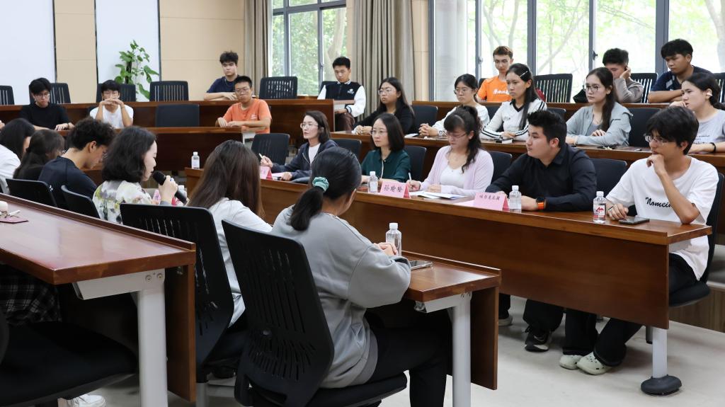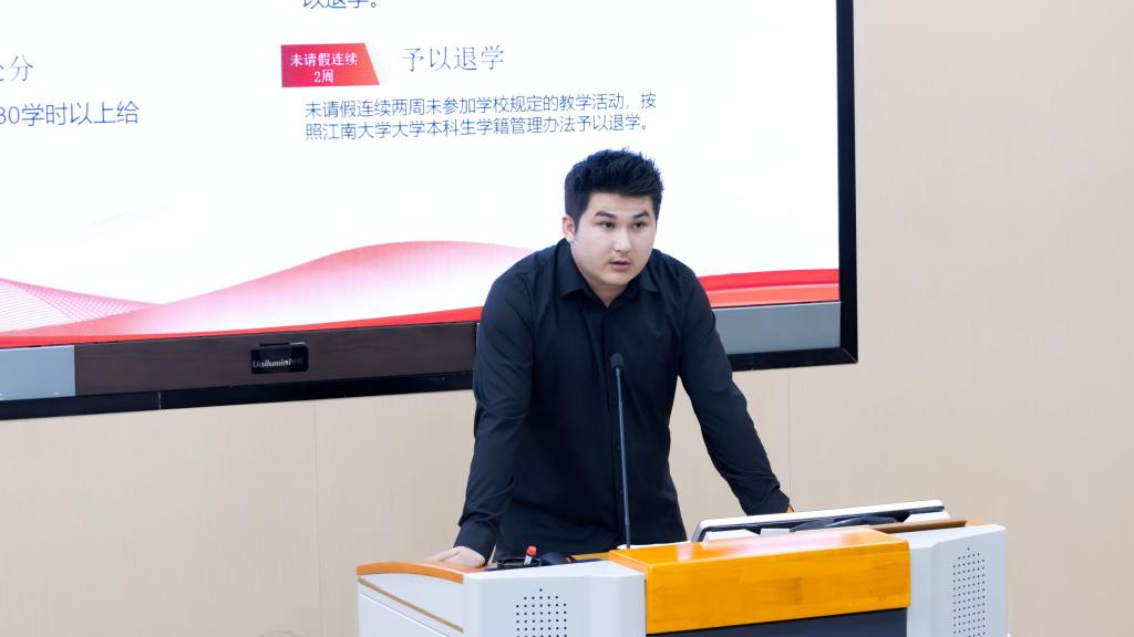 会上,国贸2204班史果、金融2403班学生依马木作为高年级学生代表,结合自身求学经历从校园生活、学习实践等方面为学弟学妹们分享经验。