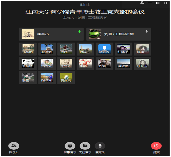 太阳成集团tyc33455cc青年博士教工党支部线上会议