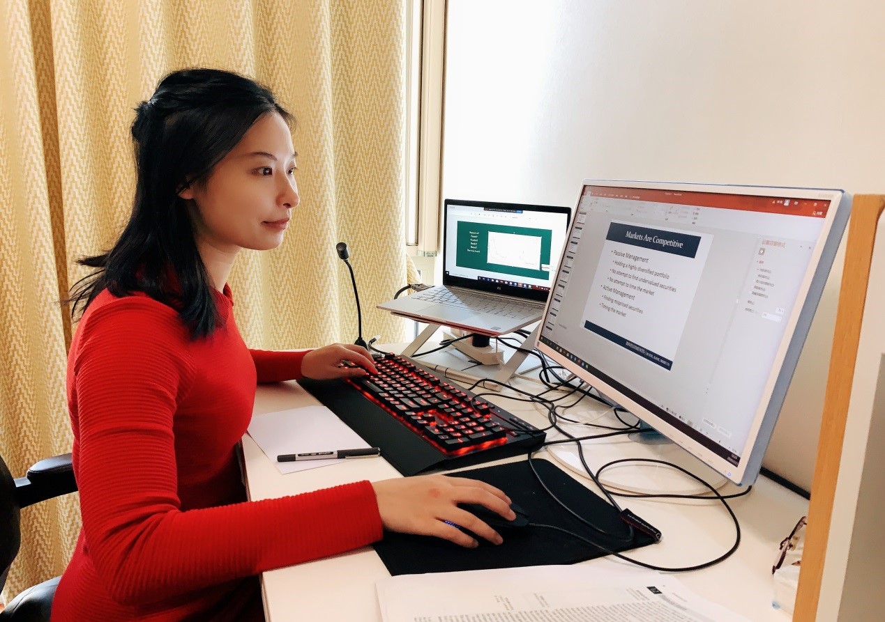 校青年教师授课比赛一等奖获得者、金融系陈嘉琪老师说:“今天我的第一节课比较特殊:由于本学期我面向BBA留学生开设了全英文的投资学课程,同学们来自于世界各地,因此这堂在线教学一下变成了‘全球直播’。这一要求很高,一方面各国网络通信技术水平参差不齐会导致网络卡顿,另一方面由于时差原因,我很难把控同学的学习状态。针对这种情况我做了一些预案:包括事先准备好课件,每隔三十分钟发起一次线上讨论,实时插入课程相关视频,开启录播功能等。从直播效果来看,我认为线上教学为我们提供了更丰富的教学手段,为翻转课堂提供了有利的支持。教育本身就鼓励探索新鲜事物,不论是教师还是学生,都会在开展线教学中有所收获。”