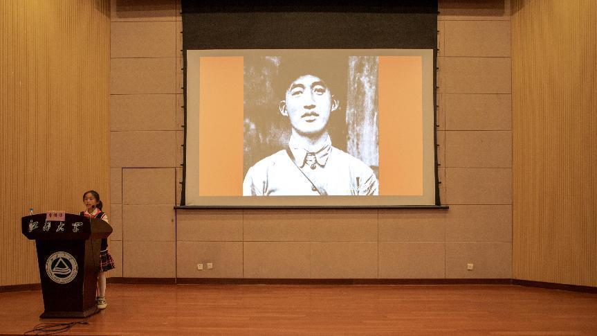 东绛实验学校詹惜语作主题演讲《大别山里的革命故事——纪念吴焕先、詹以贤烈士》。詹惜语慷慨激昂地讲述了吴焕先和詹以贤烈士从加入中国共产党到光荣牺牲的整个过程,声音洪亮、慷慨激昂,在场师生深受感染并产生强烈共鸣。这些烈士为我们留下了宝贵的财富,他们坚定的理想信念,敢想敢干、不怕牺牲的精神值得我们终身学习。