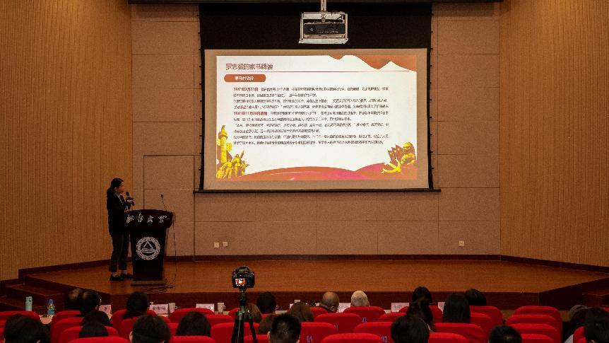 教工党员王彦芳作示范微党课《读红色家书,传先辈家风》,以新四军的由来和历史引出了罗忠毅的生平和他的英勇事迹,展示了罗忠毅的家书并进行详细解读。一封家书代表忠诚信仰,充满家国情意,彰显精神毅力。这些家书,既展现了新四军战士们铁骨铮铮的英雄气概,也体现了他们柔情似水的家国情怀。