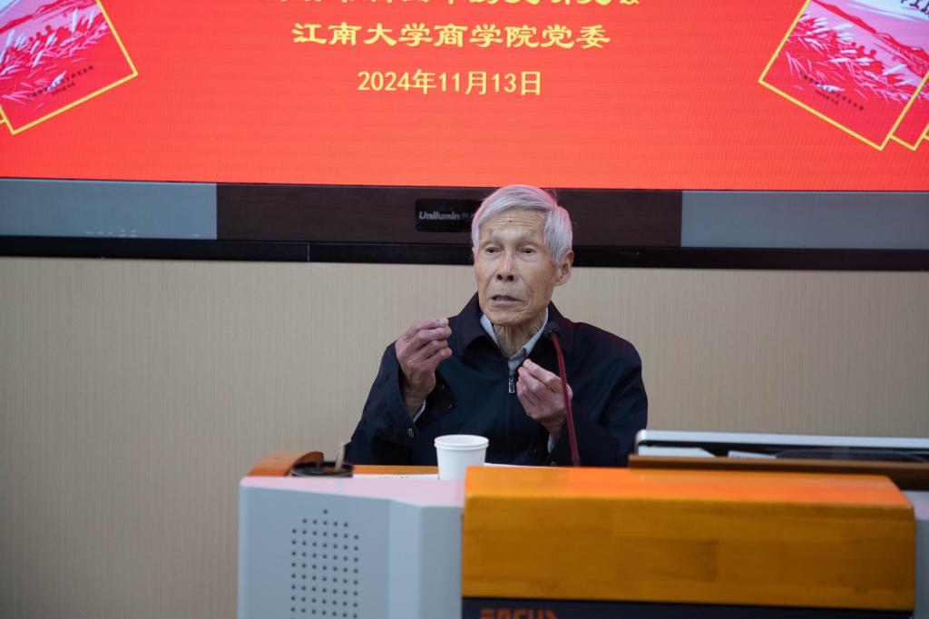 刘长青在致辞中表示,学校、学院与无锡市新四军研究会秉持“校会共建、相互赋能”理念,共同致力于传承红色基因、弘扬革命精神,已联合举办“新四军历史人物肖像画展”“参观新四军历史展”等多场活动。他指出,《无锡籍抗日军工战士》一书缅怀致敬了无锡籍抗日英雄,回顾了新四军波澜壮阔的历史,此次活动是一堂生动的党史学习教育思政课,希望同学们传承红色精神,赓续红色血脉,努力成长为有责任感、有使命感的社会主义建设者和接班人。