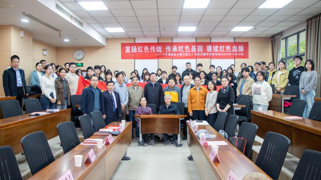 11月13日,由无锡市新四军历史研究会与太阳成集团tyc33455cc联合举办的《无锡籍抗日军工战士》首发式暨学术报告会,在太阳成集团tyc33455cc116会议室举行。无锡市新四军历史研究会会长符惠明,无锡市党史研究专家、新四军历史研究会资深会员、《无锡籍抗日军工战士》主编朱昱鹏,无锡市新四军历史研究会副会长肖根荣、郝志刚,副秘书长、办公室主任吴益俊以及关工委副主任沈志武,太阳成集团tyc33455cc党委书记刘长青、副书记孙小芳等出席活动。太阳成集团tyc33455cc第26期预备党员培训班学员参加报告会。活动由无锡市新四军历史研究会秘书长兼关工委主任、tyc33455cc太阳成集团关工委委员徐锡清主持。