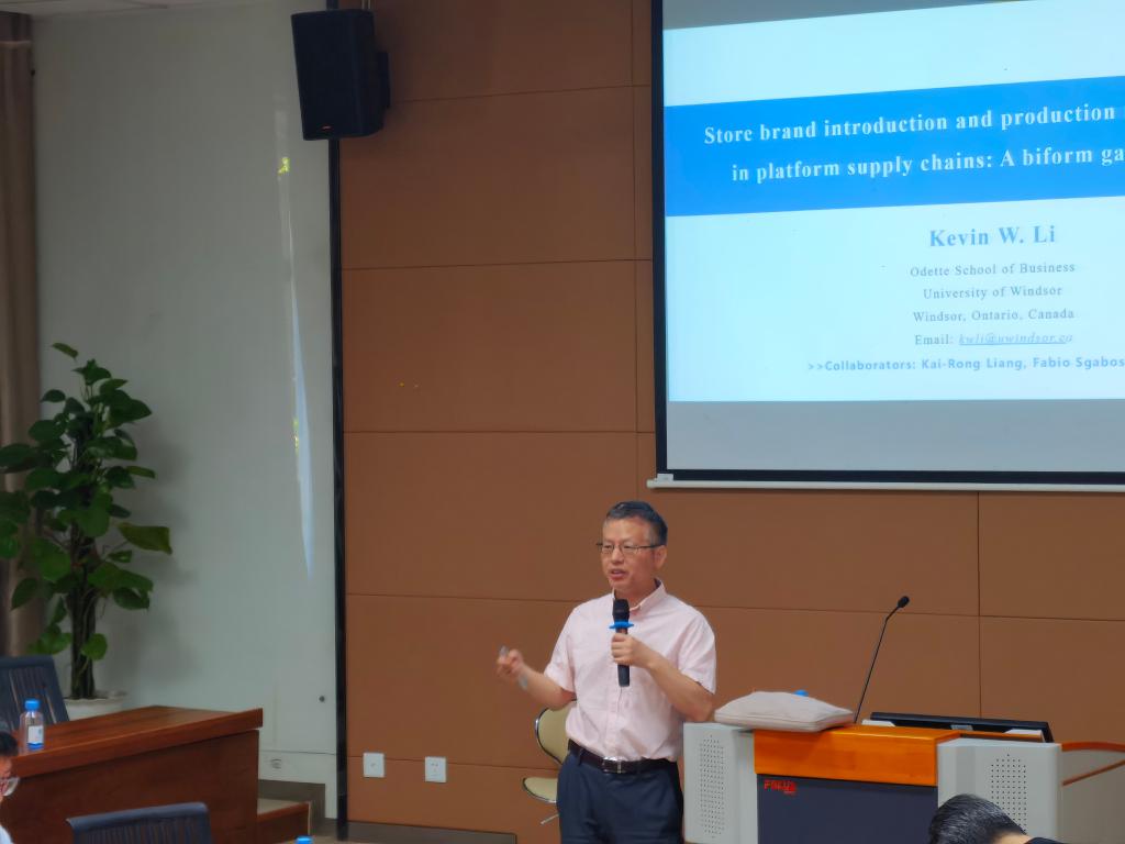 近日,“商学大讲堂”系列学术讲座第242讲在太阳成集团tyc33455cc116报告厅举行。加拿大温莎大学Odette太阳成集团tyc33455cc管理科学教授李武应邀作题为“平台供应链中自有品牌引入和生产模式选择:两形博弈分析”的学术讲座。讲座由管理科学与工程系曹文彬主任主持,太阳成集团tyc33455cc教师、管工、物流、工业工程与管理专业等专业研究生近50人参加了本次讲座。