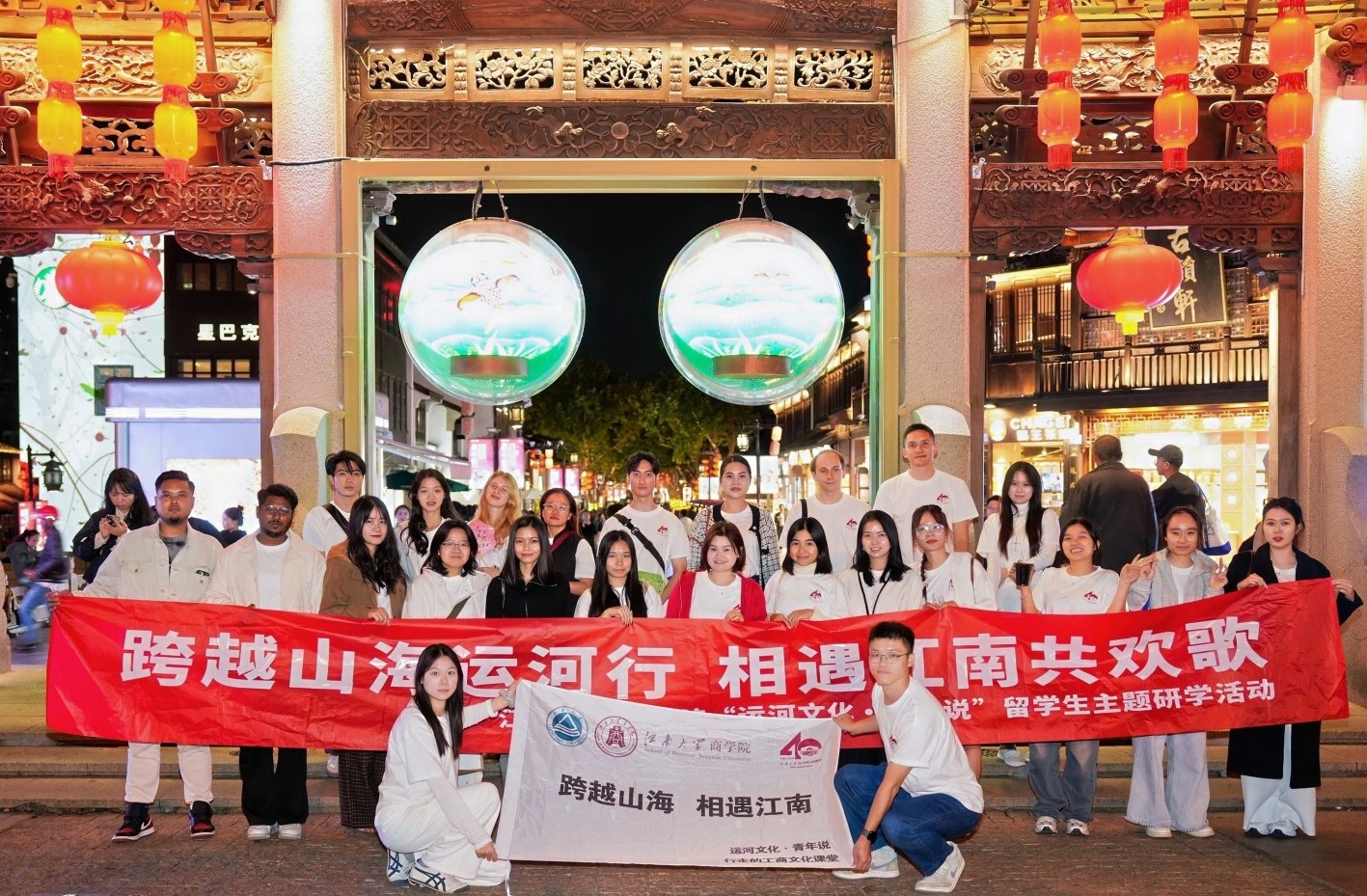活动最后,留学生们进行江南古运河文化体验,从水上视角欣赏两岸白墙黛瓦、廊桥码头的典型江南风貌,聆听运河的历史变迁、水利智慧及当代价值,在沉浸体验中读懂运河所承载的城市记忆与文明脉络。来自越南的阮氏翘仙感慨道:“河边彩绘、桥下壁画与水中民居倒影构成诗意画面。”