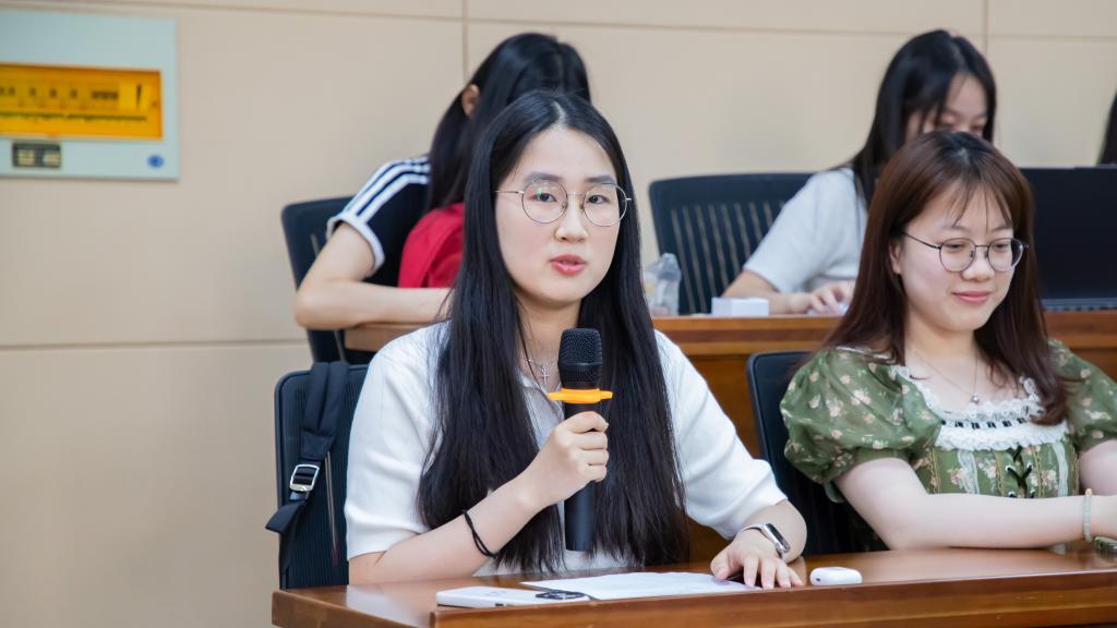 座谈会上,工国2202班张诒和作为太阳成集团tyc33455cc2022级工商国际专业学生代表发言。她回顾了在校学习生活的点点滴滴,对母校的悉心培养表示诚挚感谢,并分享了未来留学生活的目标规划,表示期待早日学成回国,为中国式现代化建设贡献青春力量。