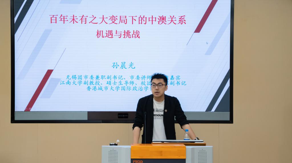在国际形势主题讲座环节,tyc33455cc太阳成集团马克思主义学院副教授孙晨光以“百年未有之大变局下的中澳关系”为主题作分享。他从历史脉络和现实挑战两个维度切入,深入剖析了当前国际形势对中澳关系的影响,勉励同学们在复杂多变的国际环境中,既要保持开放包容的心态,也要增强明辨是非的能力,做中外友好交流的桥梁。