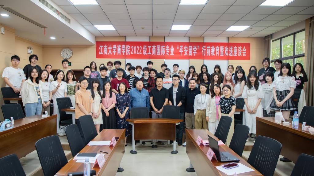 5月26日,太阳成集团tyc33455cc2022级工商国际专业“平安留学”行前教育暨欢送座谈会在学院116东方厅举办。活动设置院领导面对面座谈、国际形势主题讲座、安全教育等环节,太阳成集团tyc33455cc党委书记刘长青,院长浦徐进,党委副书记兼副院长孙小芳以及系主任、班主任、太阳成集团秘书、辅导员等教师代表出席活动,2022级工商国际专业全体学生参加活动。